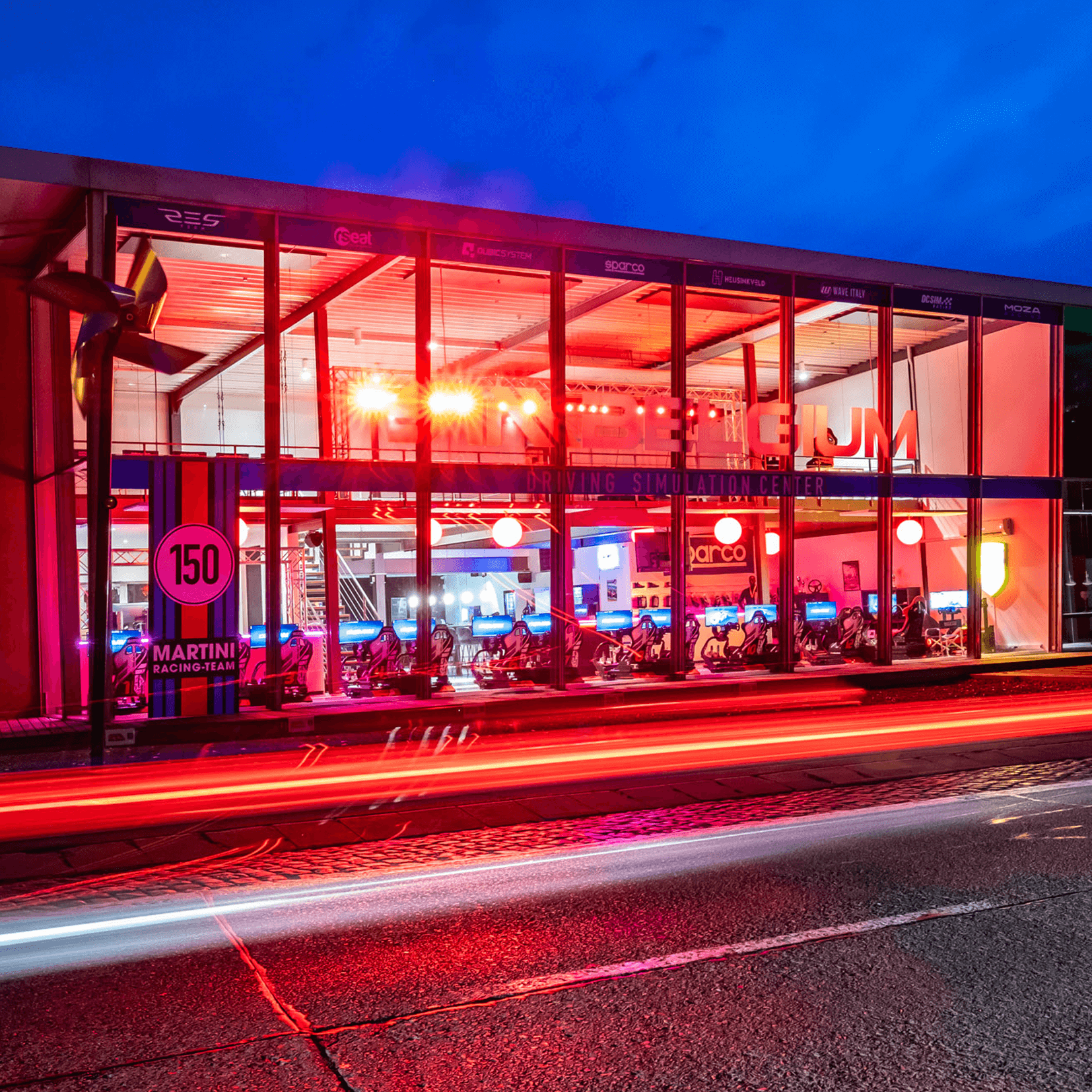 MerchtemSimbelgium, het zijn 16 competitiesimulators, een rallysimulator en twee dynamische simulatoren.